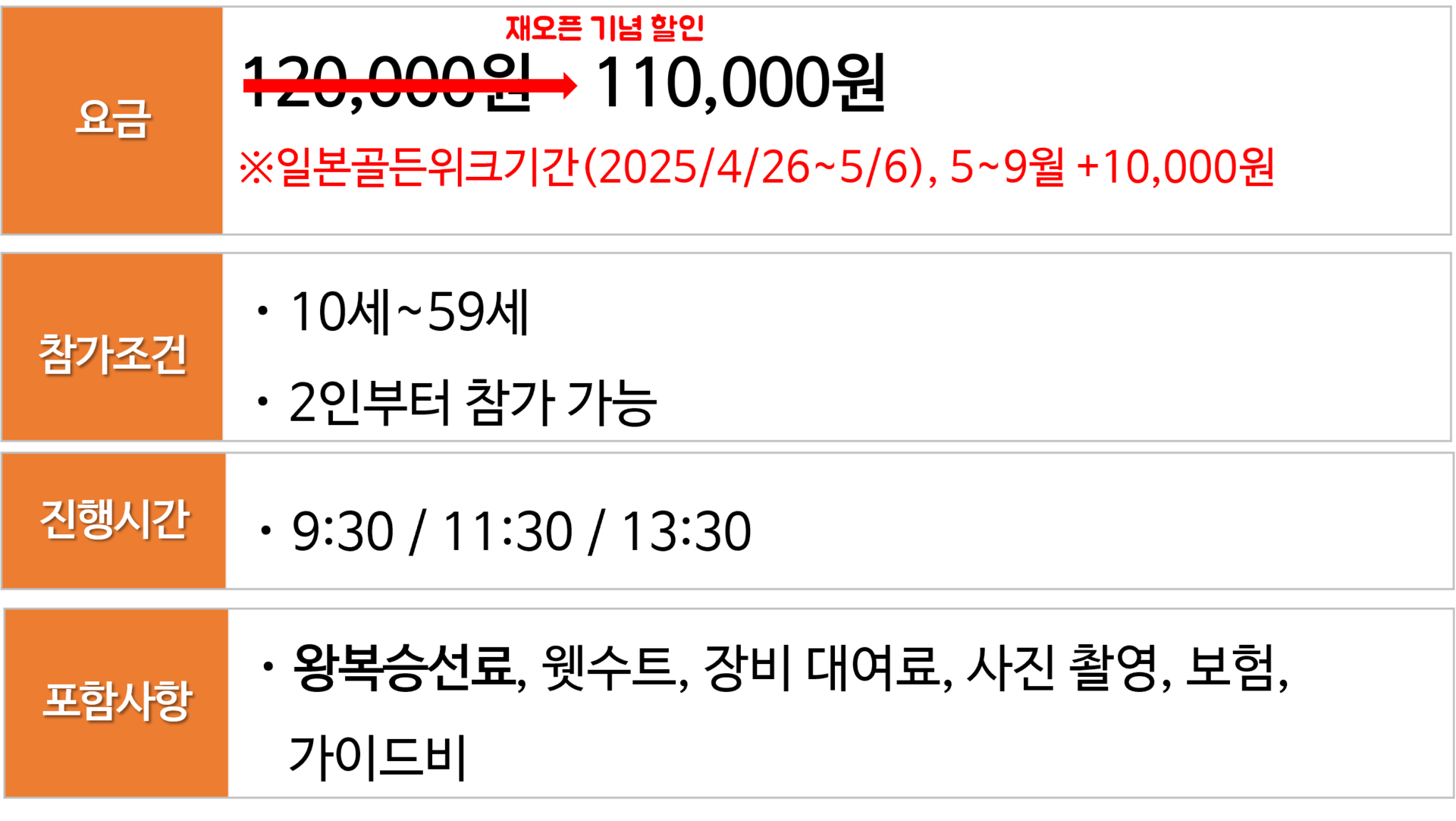 - 참가일 기준 1일전 ~ 당일 혹은 NoShow : 취소/변경/환불 불가