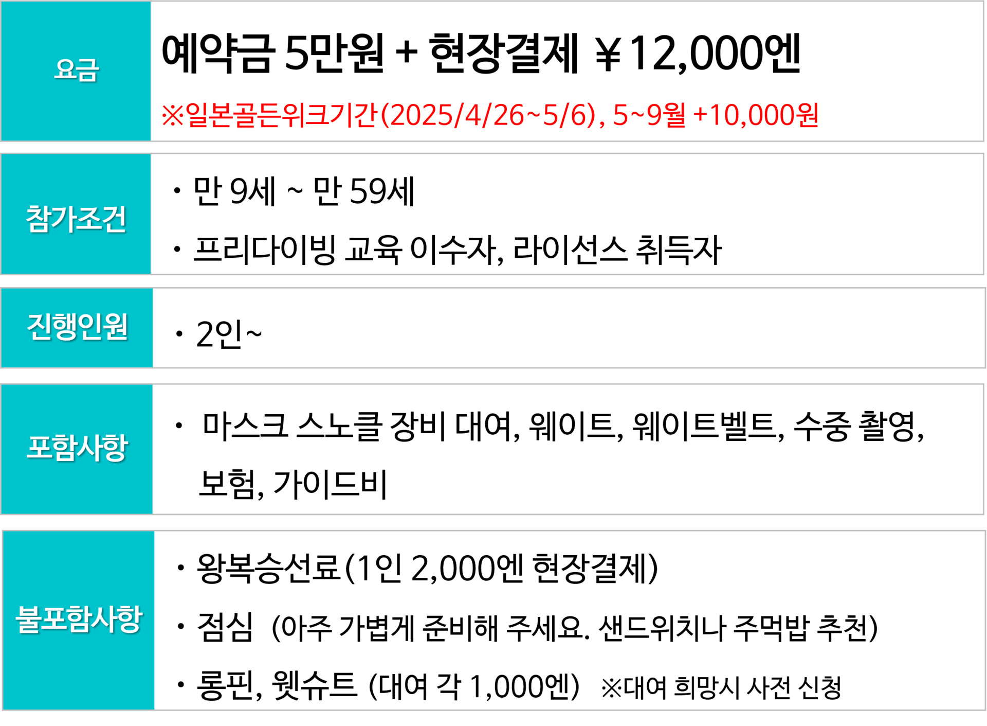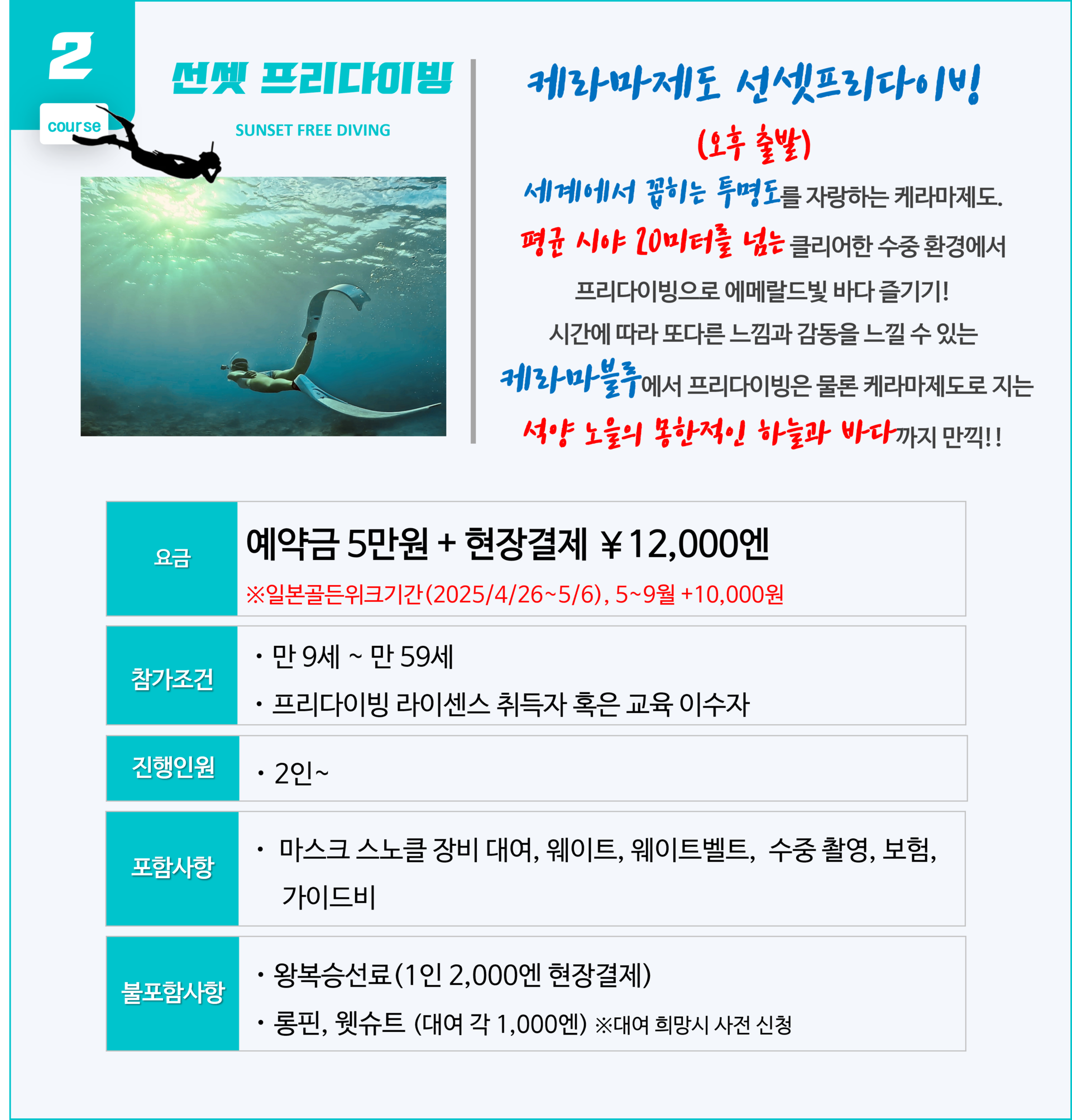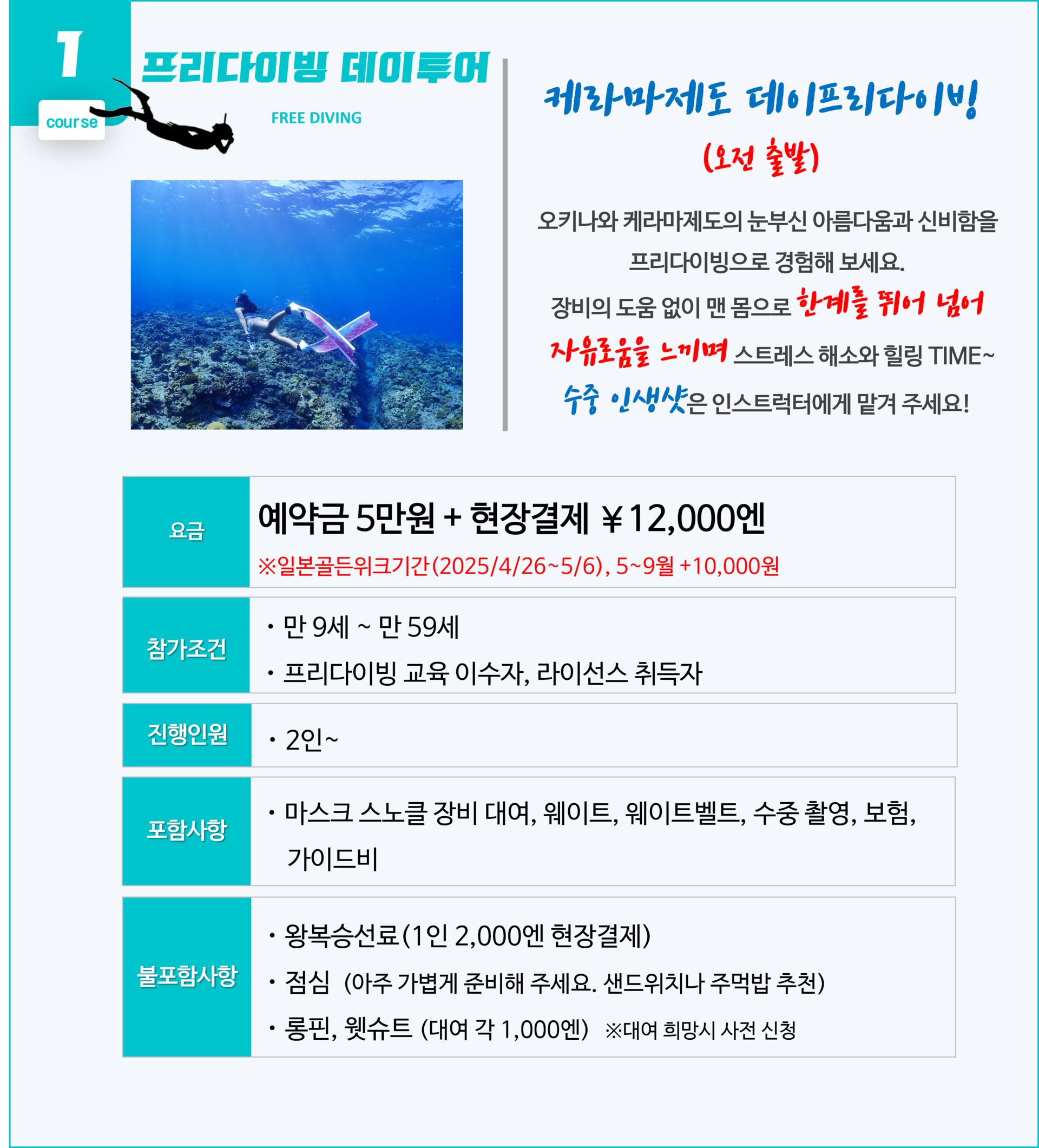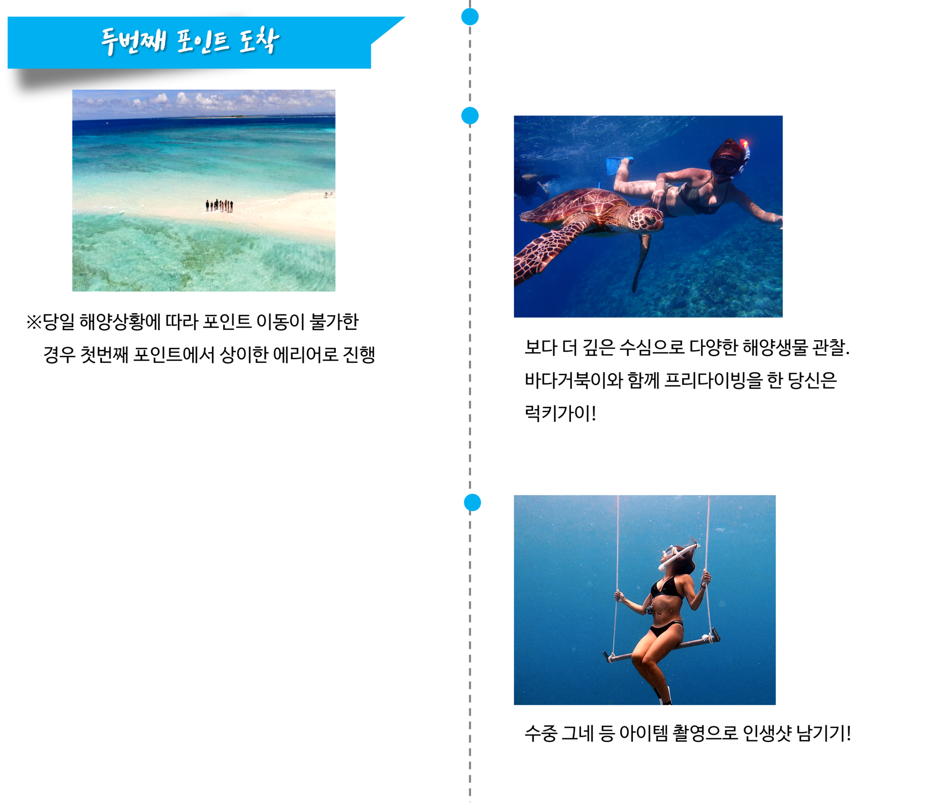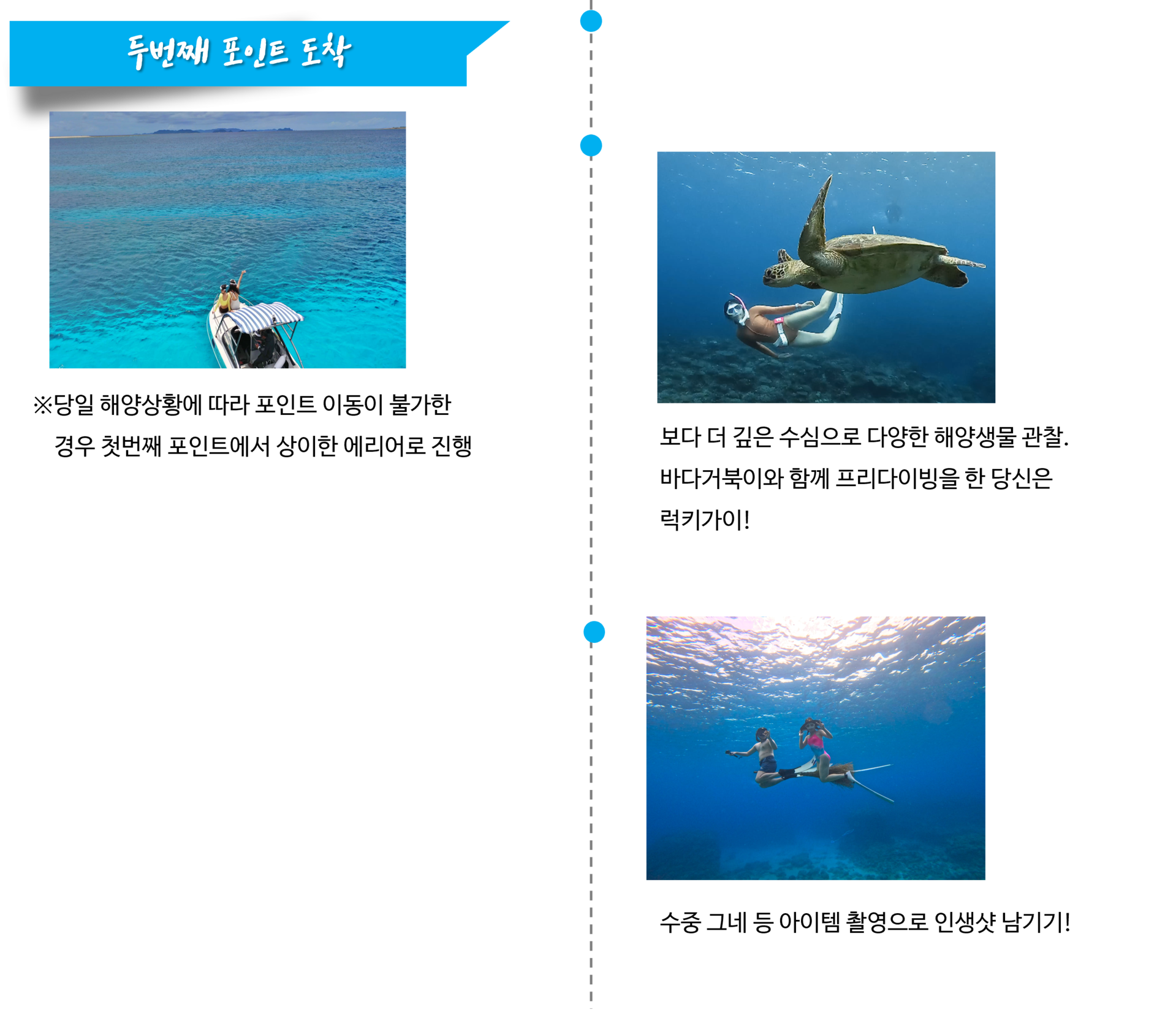 ▶ 포인트는 당일 해양 상태에 따라 1-2 포인트로 진행됩니다.