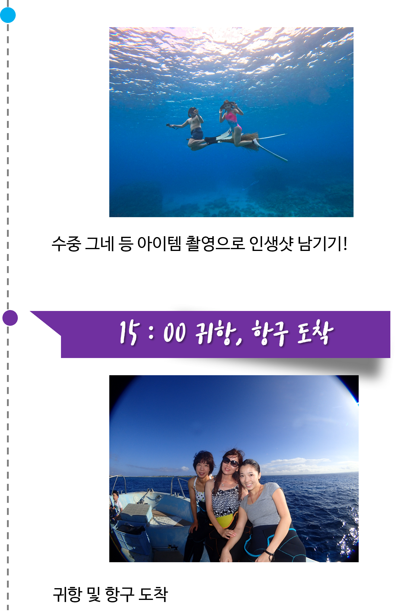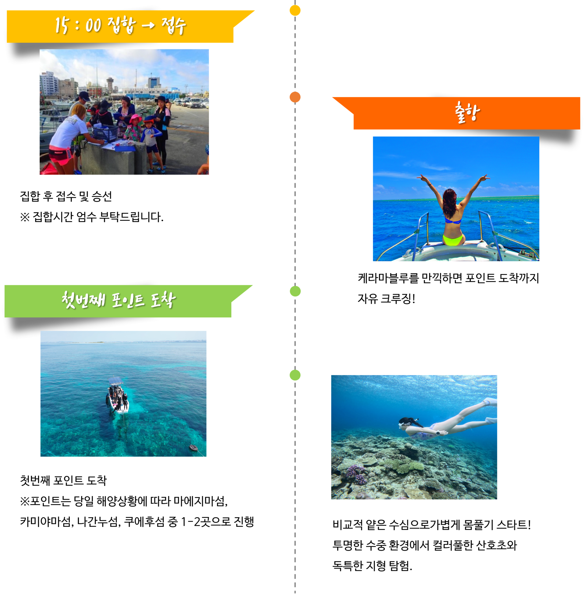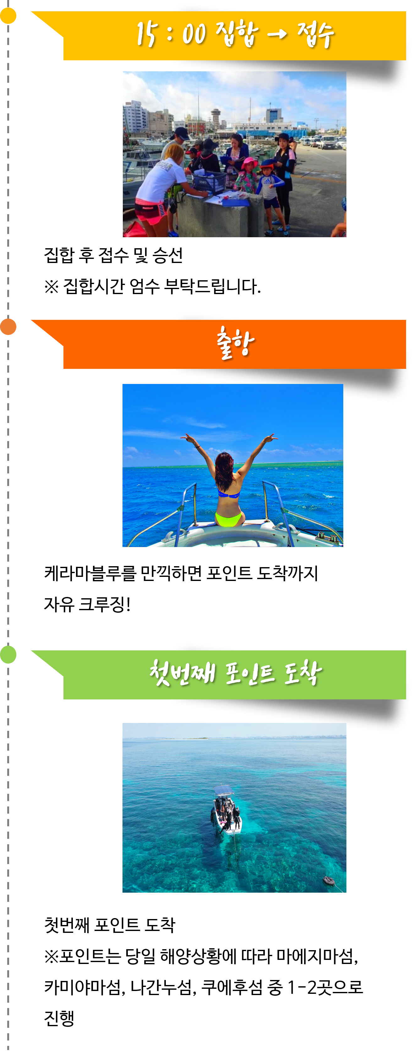 ▶ 투어 스케줄은 당일 해양 상태에 따라 30분~1시간정도 차이가 있을 수 있습니다.